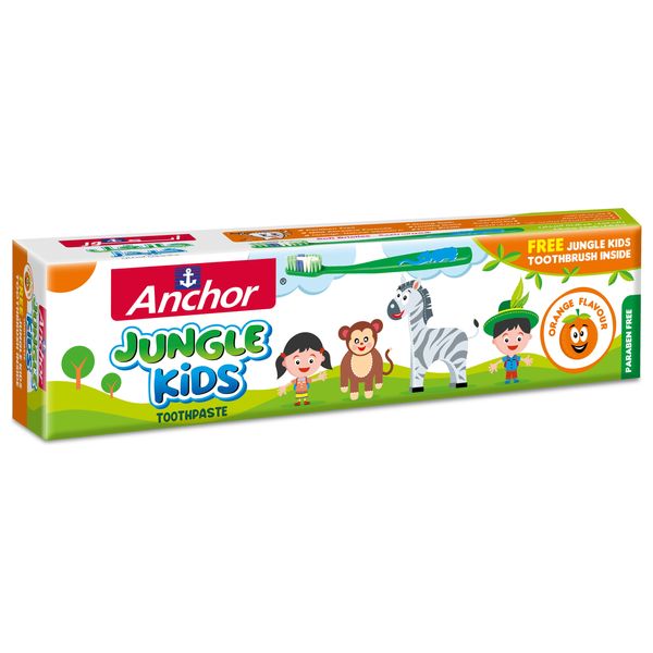 Anchor Jungle Kids Toothpaste is orange flavored and includes a kid-friendly brush for easy daily brushing. Supports gentle oral care for children