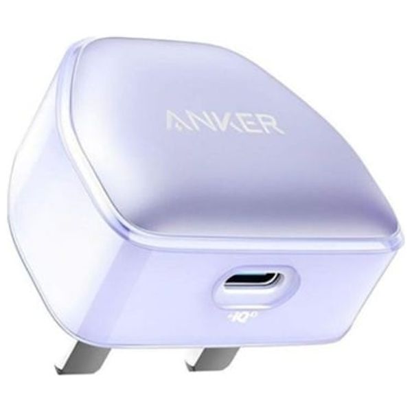 Anker 511 Charger (Nano Pro) is a compact 20W USB-C wall charger in purple. It features a single USB-C port delivering up to 20W, suitable for fast charging smartphones and other USB-C devices. Its small footprint makes it easy to use at home or on the go.
