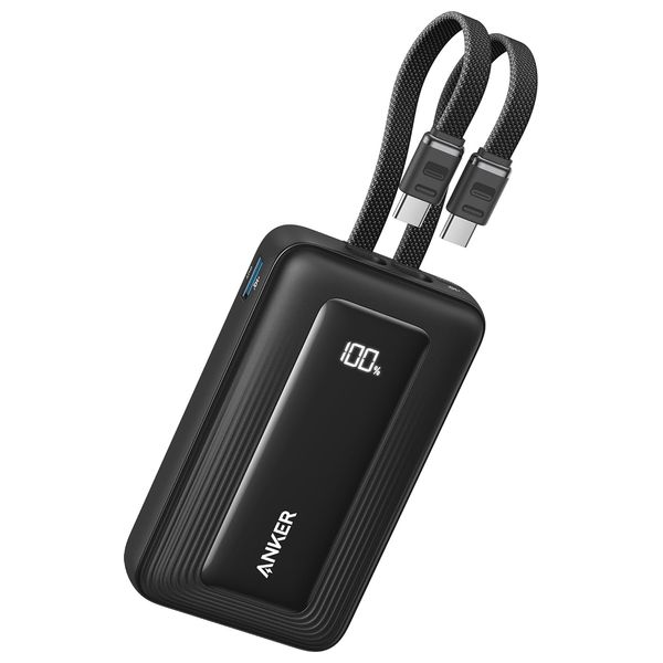 The Anker Zolo 10,000mAh power bank delivers 30W fast charging via the built-in USB-C cable or USB-C port. Equipped with two USB-C cables, it allows direct charging for phones and smart devices without extra cables, supporting both Android and Apple devices. Compact and portable, it is ideal for travel. The intelligent charging reminder activates when battery level drops to 5%, ensuring your power bank is ready while extending battery lifespan.