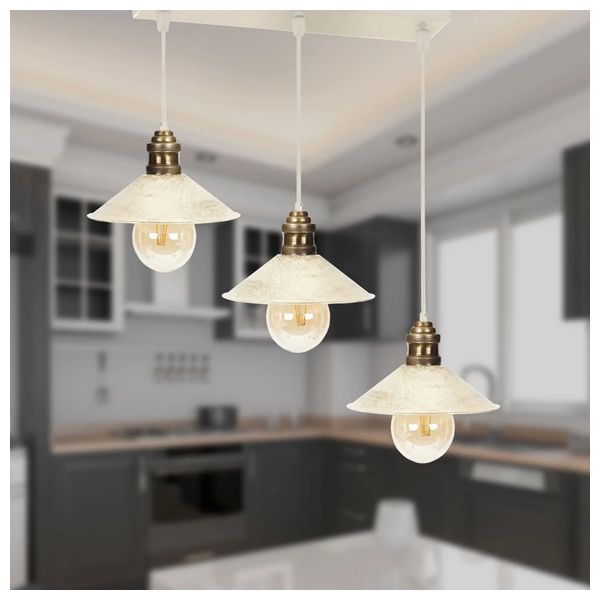 It comes with three pieces to provide ample and balanced lighting for interior spaces such as living rooms, dining rooms or offices.
