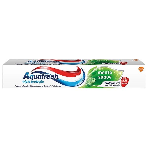Aquafresh Triple Protection Menta Suave toothpaste provides comprehensive care for the whole family. Its 3-in-1 formula is designed to help strengthen tooth enamel, protect gums, and keep breath fresh for longer. This mild mint-flavored toothpaste offers effective daily oral hygiene, ensuring a clean and healthy mouth with every brush.