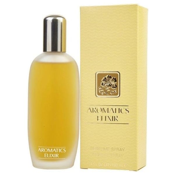 Clinique Aromatics Elixir is a timeless women's perfume that opens with bergamot, galbanum, rose, chamomile, coriander, and rosewood. The heart blends jasmine, lily of the valley, ylang-ylang, carnation, tuberose, and orris, while the base combines patchouli, musk, amber, sandalwood, vetiver, civet, oakmoss, and cistus for a lasting, sophisticated scent. Packaged in a classic yellow bottle, this 100 ml Eau de Parfum is ideal for elegant day-to-evening wear.