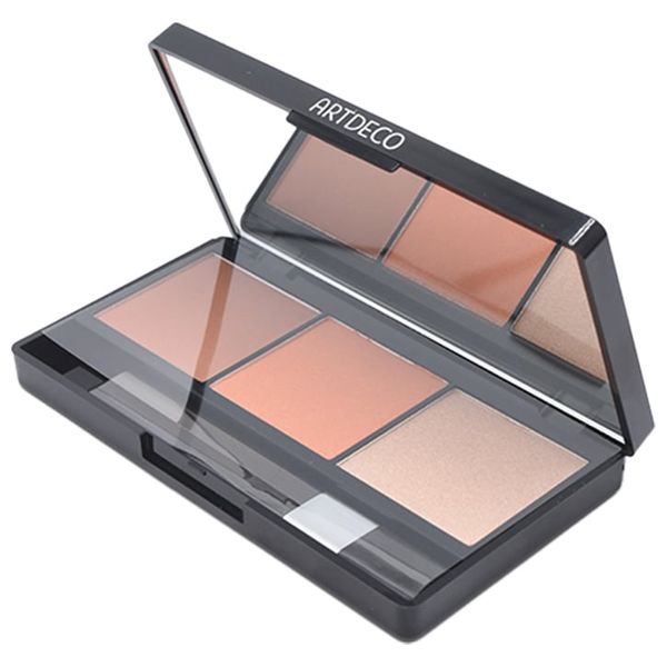 Face makeup palette, contains 3 shades, bronzer, blush, and highlighter, It features an ultra light formula that is easy to apply and blend, enabling you to get a complete look in one set