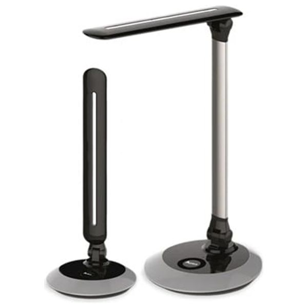 This Aswar desk lamp features a modern design and versatile lighting, ideal for studying, working, or nighttime use. The lamp's light is controlled via a touch-sensitive switch that allows you to switch between three brightness levels: white, off-white, and solar, providing the appropriate lighting as needed. The frame also features RGB lighting that creates a distinctive atmosphere and can be easily controlled by touching and swiping to change the color and brightness.