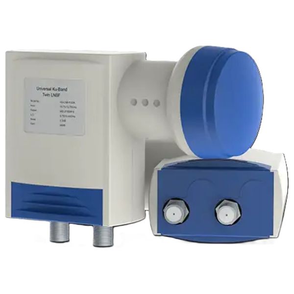 AS-LNB-KU2A from Aswar is a twin-port KU-band LNB designed for outdoor satellite installations. It features IP66 weatherproof housing, dual outputs, input frequency 10.7–12.75 GHz, and output frequency 950–2150 MHz with a low 0.3 dB noise figure for reliable signal reception.