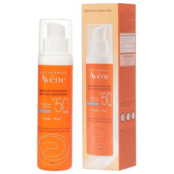 Avène Sun Care Fluid SPF 50 provides very high protection with a light, fluid texture that glides onto the skin. It moisturizes, smooths, and helps regulate sebum, while remaining water- and perspiration-resistant for everyday use. Suitable for sensitive skin.