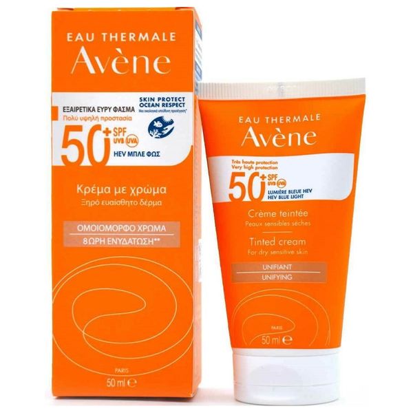 Tinted sunscreen with SPF 50 from Avène that provides high hydration and sun protection. It delivers an imperceptible finish, a comfortable feel, and helps even the skin tone for an immediately radiant complexion. Suitable for dry, sensitive facial skin.
