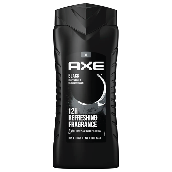 Experience Axe Black Frozen Pear & Cedar Shower Gel, a 400 ml 3-in-1 body, face and hair wash that gently cleanses the skin while leaving a fresh feel. It helps maintain the skin’s natural pH balance and, with regular use, keeps skin soft and firm. The formula delivers a 12-hour refreshing fragrance and includes plant-based prebiotics for a healthier cleanse.