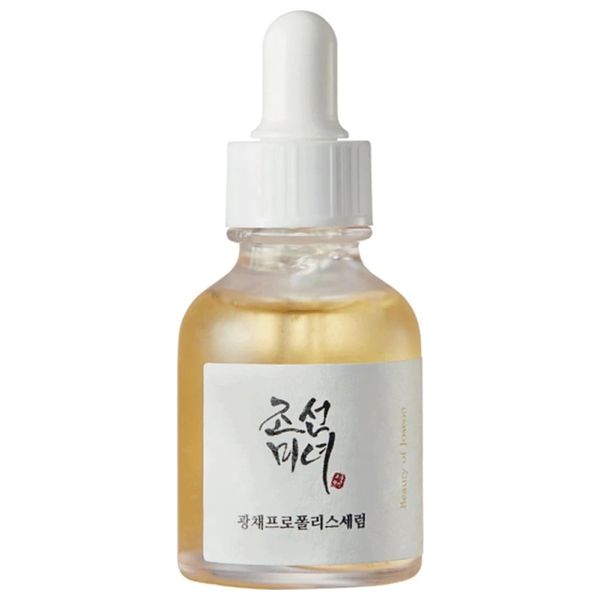 Beauty Of Joseon Glow Serum Propolis & Niacinamide 30 ml is a radiance-boosting facial serum formulated with propolis extract and niacinamide. Its honey-like texture helps brighten the skin while a high propolis content (60%) provides antiseptic and antibacterial action, soothing the skin and supporting regeneration. Niacinamide at 2% helps reduce pigmentation and wrinkles and also smooths enlarged pores for a more refined complexion.