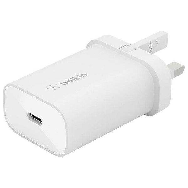 Belkin Type-C 25W wall charger delivers fast USB-C PD charging for iPhone and other USB-C devices. The PPS-enabled, single-port charger supports up to 25W for devices like iPhone 13 Pro Max (0–50% in about 24 minutes), iPhone 13/12 (~20W), and iPhone 11 (~18W). Compact, safe, and compatible with USB-C PD 3.0 devices.