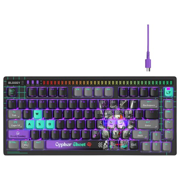 The Bloody AT75 Cypher Ghost delivers pro-level performance in a compact 75% layout with ultra-fast Alpha Optical Switches and dynamic RGB sound-reactive lighting. Enjoy silent, precise, and fully customizable typing and gaming control.