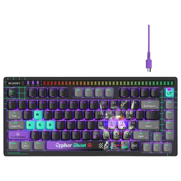 Gaming keyboard with Bloody Alpha optical switches with TPE silicone for silent operation