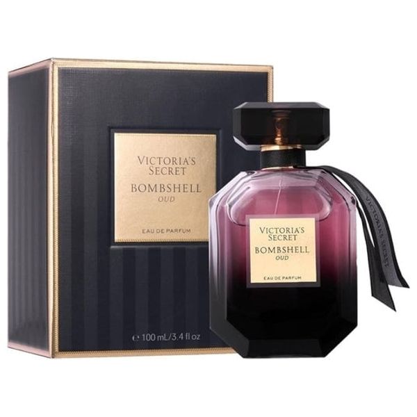 Bombshell Oud by Victoria's Secret is a feminine fragrance that blends warm oud with floral and fruity notes. This eau de parfum for women comes in a 100 ml bottle and features a luxurious dark glass bottle with a faceted cap, delivering a lasting, elegant scent suitable for everyday wear and evening occasions.