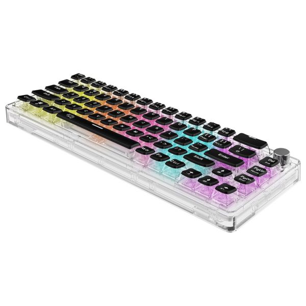 Porodo Pudding – Mechanical Keyboard – Transparent delivers a compact 67-key layout housed in a clear chassis that highlights RGB lighting for a vibrant gaming and typing experience. A 1.5 m PVC USB cable provides flexible setup across desks and gaming stations. The mechanical switches offer fast, tactile keystrokes and reliable responsiveness, while the transparent case enhances LED effects to elevate your setup.