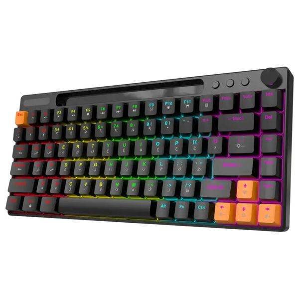 Porodo 84 Keys Mechanical Gaming Keyboard combines a compact 84-key layout with high responsiveness. It uses SNK Red switches for fast, smooth keystrokes and reduced finger fatigue during long gaming sessions. The keyboard features US and Arabic keycaps for multilingual use. A 1.5 m USB PVC cable ensures a stable wired connection on Mac and Windows. With 23 dynamic backlight modes, you can personalize the look to match your game or mood.