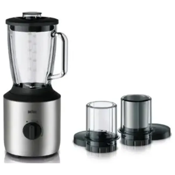 The Braun JB3273SI blender has 800W power, ideal for smoothies, juices, soups, sauces, and hot or cold drinks. Its powerful motor blends tough ingredients like ice and frozen fruits easily, with a sleek silver design and quiet, efficient performance for home use.