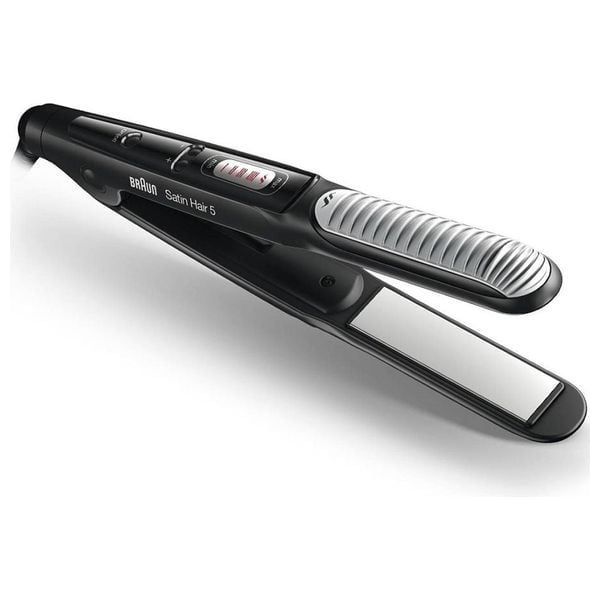 Braun ST550 hair straightener in black delivers smooth, effective styling for everyday use. Its compact, ergonomic design provides comfortable handling, while adjustable heat settings accommodate different hair types for reliable straightening and quick touch-ups.