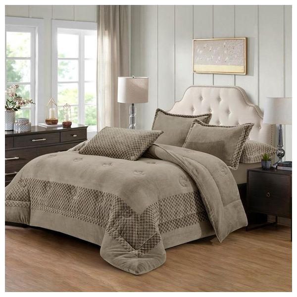 Luxury Jacquard 6-piece flannel comforter set, includes a 260x230cm comforter, a 200x200cm fitted sheet with a depth of 35cm, two 50x75cm pillowcases, and two 50x75+5cm shams.