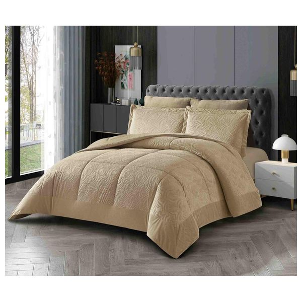 6-piece micromink jacquard duvet cover set, including a 260x240cm duvet cover, a 200x200cm fitted sheet with a deep pocket, 35cm, two 50x75cm pillowcases, and two 50x75+5cm decorative pillowcases.