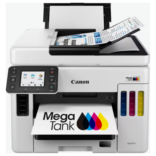 High-performance refillable ink tank printer with print, copy, scan, and fax functions, featuring Wi-Fi, Ethernet, and USB connectivity. Enjoy fast print speeds up to 24 ipm (black) and 15.5 ipm (colour), and ultra-high yields up to 6,000 black / 14,000 colour pages. Equipped with a 6.9 cm tiltable colour touchscreen, 50-sheet ADF/D-ADF for two-sided scanning, and support for diverse media including banners up to 1200mm. Ideal for high-volume office environments.