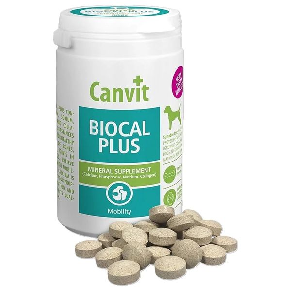 A calcium-rich mineral supplement for dogs, designed to support bone and joint health. These chewable tablets contain a blend of calcium citrate and collagen to promote bone strength, joint health, and mobility. The formula includes lactose, calcium carbonate, dicalcium phosphate, and sodium phosphate.