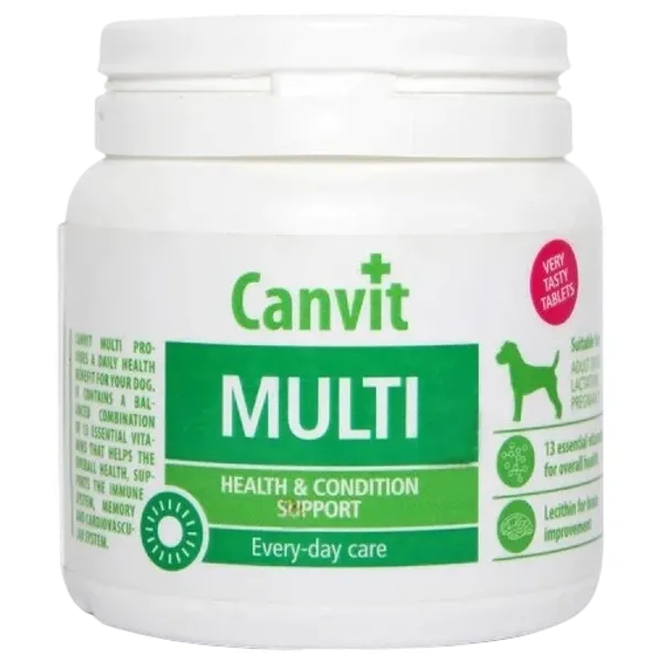 A complete nutritional supplement for dogs. It provides a balanced blend of essential vitamins to maintain overall health and support recovery during physical exertion and stressful conditions. It also supports the health of pregnant and lactating dogs and the vitality of puppies. Directions for use: Give the tablets daily directly from the hand or crush and mix with food.