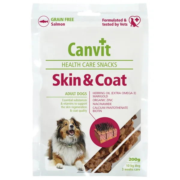 A functional meal designed to support healthy skin and a thick, shiny coat for dogs. It combines omega-3 fatty acids from herring oil with amaranth, zinc, niacin, and biotin to support skin metabolism and coat quality. It's a complementary food for dogs that provides a regular intake of vitamins and minerals for healthy skin.