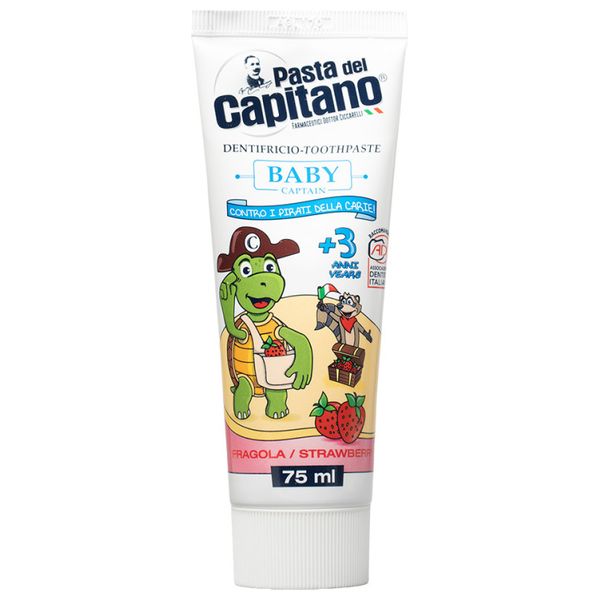 Gentle strawberry-flavored gel toothpaste, specially designed for children. Its fluoride and calcium-enriched formula promotes healthy gums and helps protect baby teeth.