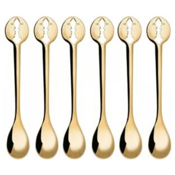 Set of six Casa Bugatti Kiss espresso spoons finished in a charismatic gold color. The spoons are characterized by an elegant and unique form, on which we will find a subtly incorporated shape of faces approaching for a kiss.The Kiss collection is a unique series featuring a romantic motif presented by the designer Teseo Berggelle. The elements from this collection are full of elegance, so the spoons will look great with cups of good espresso.
