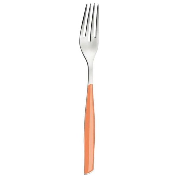 Casa Bugatti Glamour Melon Table Fork is a 6-piece set in Watermelon color. Crafted from solid 18/10 stainless steel with 2.5 mm thick tines, it features a transparent SAN resin handle tinted with a hint of color for a playful yet refined table look. The cutlery is dishwasher safe, making everyday dining easy while adding a vibrant touch to your table. Mix and match colors from the Glamour collection to create a personalized table setting.