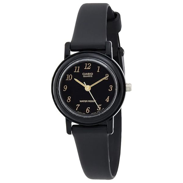 This stylish Casio women's analog watch features a sleek black resin band and durable resin glass. With its accurate timekeeping and water resistance, it's perfect for everyday wear. Enjoy a battery life of approximately 3 years, making it a reliable addition to your accessory collection.