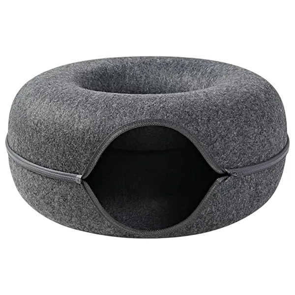 Designed specifically for cats, this spacious and comfortable tunnel allows for easy entry and exit and is suitable for all seasons with its removable and washable design. The tunnel provides a safe and enjoyable space for sleeping or playing, featuring rounded edges and high-quality construction to ensure your cat's comfort and safety. Made from eco-friendly felt, it is scratch- and wear-resistant, with the perfect elasticity and warmth for cats. The sturdy and stable structure allows cats to run, play, or sleep safely and can accommodate two cats simultaneously. An innovative zipper design makes the tunnel easy to remove and wash, and it offers ample interior space and plush balls for play and interaction.