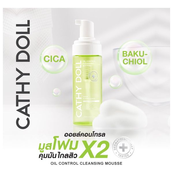 Cathy Doll Oil Control Cleansing Mousse provides deep, gentle cleansing while balancing oil. The formula uses Balanced Charge Cleansing Technology with a blend of anionic, cationic, and non-ionic surfactants to remove dirt and oil while retaining moisture.