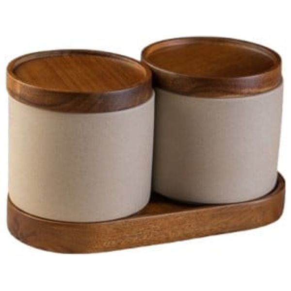 This elegant ceramic set features natural wooden lids, ideal for storing sugar, spices, or small kitchen items. The smooth glaze and sturdy construction provide durability with a warm, rustic aesthetic suitable for Iraqi kitchens and dining spaces.