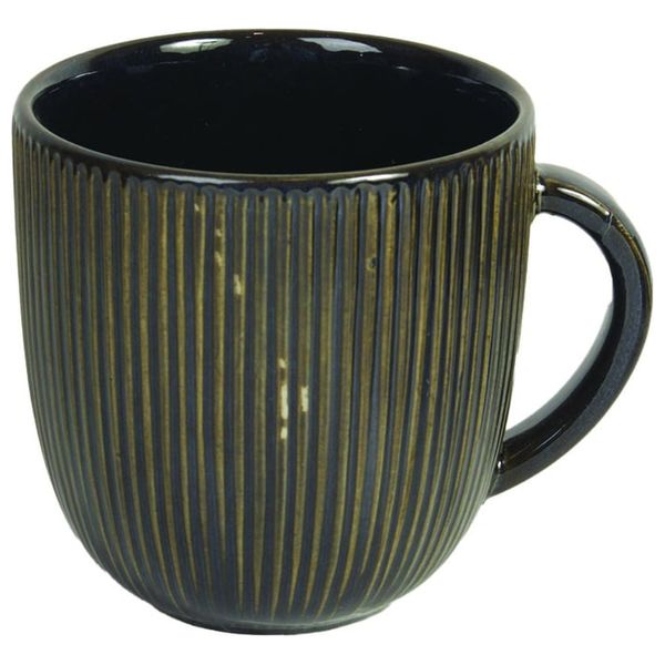 A grooved mug used for drinking coffee and tea, 8.5 cm high, 8.3 cm wide