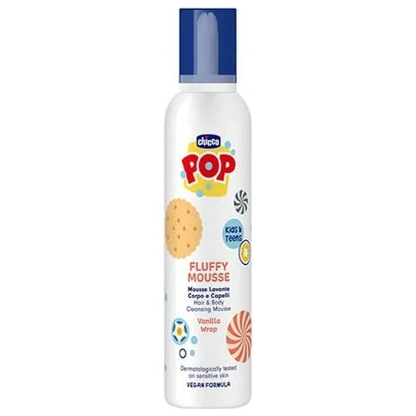 CHICCO Kids Fluffy Mousse Vanilla is a gentle cleansing mousse designed for body and hair. Its airy foam dispenses easily and creates a creamy lather that leaves skin clean, soft, and lightly scented with vanilla. Formulated as a vegan product and dermatologically tested for sensitive skin, this mousse offers a comforting bath time ritual for children.