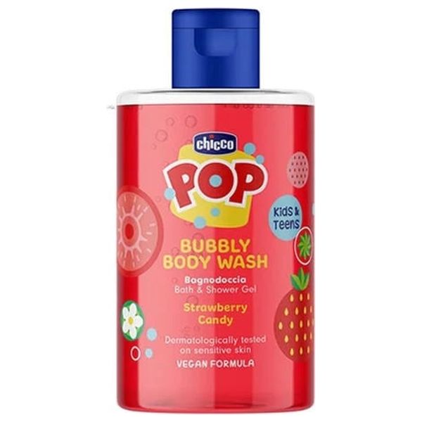 Chicco Kids Bubbly Body Wash Strawberry Candy provides a gentle cleanse with a fruity strawberry fragrance. Dermatologically tested on sensitive skin and formulated with a vegan formula, it cleanses without irritation while delivering a light, bubbly lather that kids will enjoy. The 300 ml bottle is designed for daily bath time, supporting skin health and environmental responsibility.