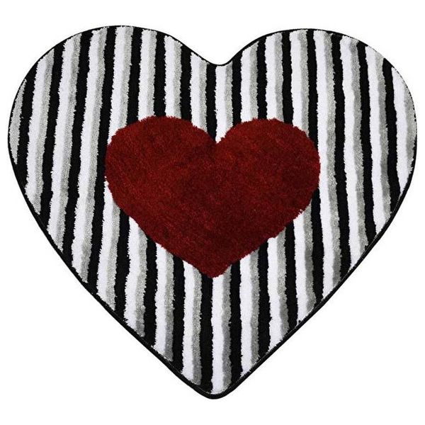 Çilek Home Heart Line 90 Doormat in the shape of a heart, with black and white stripes and a red heart in the middle, handmade, adds an aesthetic and practical touch to the entrance, machine washable at 30°C and suitable for entrances and living rooms