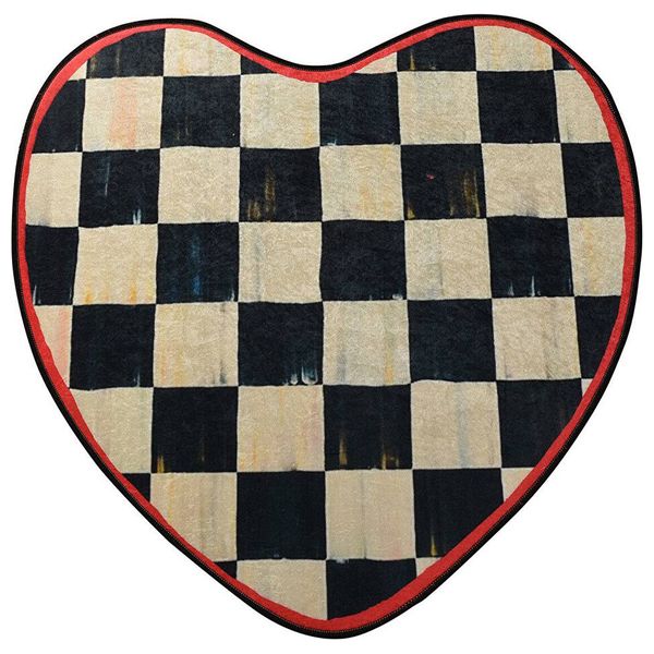 Black and cream checkered heart shape with red edge, washable at 30°C, suitable for entrances and indoor spaces