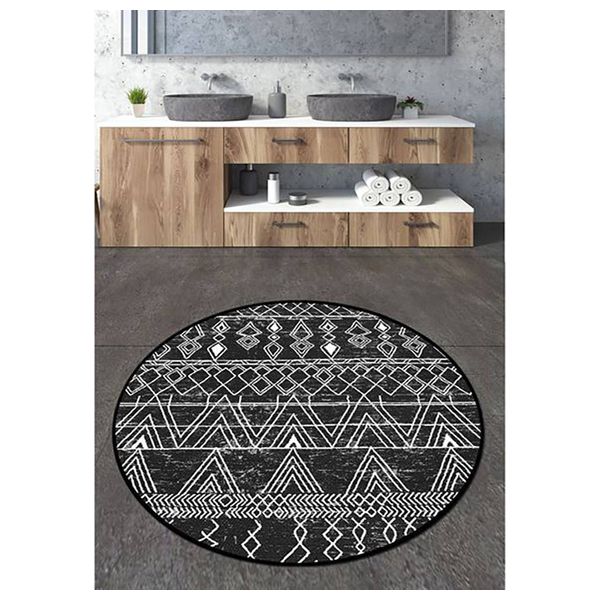 The Chilai Home Round Doormat comes with a stylish white geometric pattern, giving it a modern look that adds a distinctive decorative touch to bathrooms or entryways.