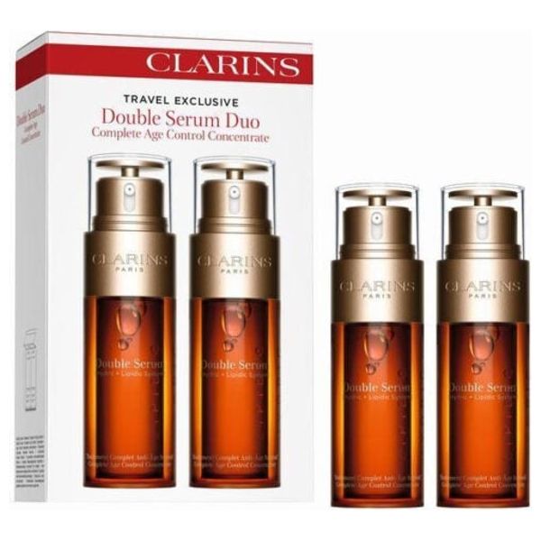 Clarins Double Serum Duo combines two 50 ml bottles of the dual-phase, anti-aging serum. This complete age-control concentrate blends water- and oil-soluble ingredients with 21 plant extracts to support skin texture, firmness, and radiance. The dual-chamber design ensures potent active ingredients are delivered evenly with daily use. Suitable for all skin types, it helps reinforce the skin’s natural defenses and provide a smoother, more radiant complexion.