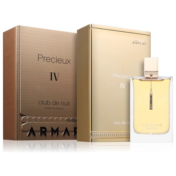 Club de Nuit Precieux IV by Armaf is a sophisticated and luxurious Extrait de Parfum designed for those who appreciate a blend of floral, fruity, and gourmand notes. This unisex fragrance opens with a refreshing burst of bergamot, crisp apple, and a hint of sea salt. The heart reveals a creamy floral bouquet of ylang-ylang, jasmine, white lily, and sweet red berries. It settles into a rich, long-lasting base of whipped cream, warm vanilla, tonka bean, musk, and earthy patchouli, creating an unforgettable and elegant scent profile.