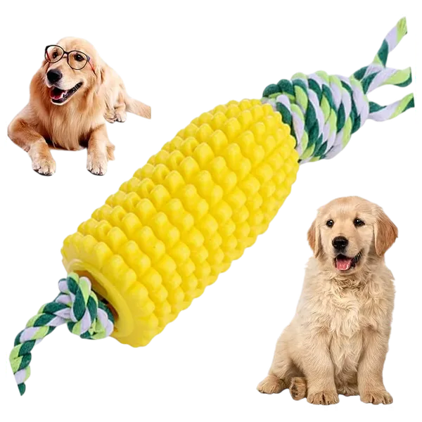 A durable dog toy designed with corn-shaped bumps to clean incisors, canines, and molars while playing. Its squeaky design encourages dogs to jump and roll, helping them release energy in a fun way. Made from natural rubber, it combines softness and durability to withstand the chewing of even the most hardy dogs.