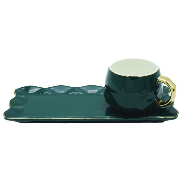 A rectangular cup and saucer set is a practical and elegant addition to any dining table, designed for serving dishes to guests. The set includes a cup and saucer, offering a variety of serving options.