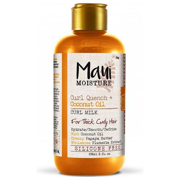A conditioning emulsion for curly hair, infused with Coconut Oil with Papaya Butter and Plumeria Extract, helps detangle and eliminate frizz while enhancing softness for shiny, soft waves or coils.