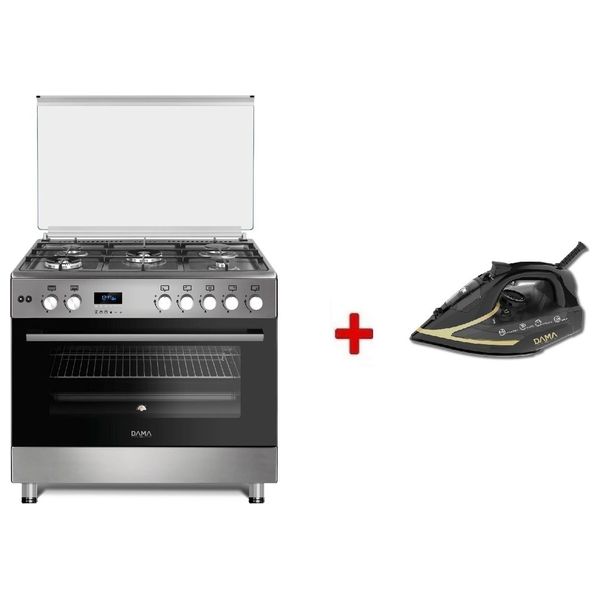 5 gas burners Sabaf, size 90*90*60 mm Height control, sensor, safety valve, LCD, Easy to clean surfaces, oven and double class easy removable and clean, Screen, flames silver color.