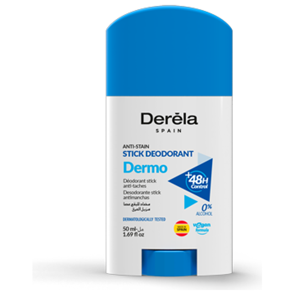 Derela Spain Dermo Stick Deodorant provides up to 48 hours of odor protection with a plant-based formula. This alcohol-free deodorant is gentle on the skin, dermatologist-tested, and comes in a convenient 50 ml stick.