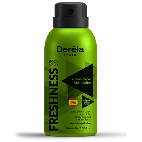 Derela Spain Freshness Body Spray features a plant-based formula that provides long-lasting protection against body odors without staining clothing. It delivers a refreshing, strong fragrance to the skin for everyday wear.