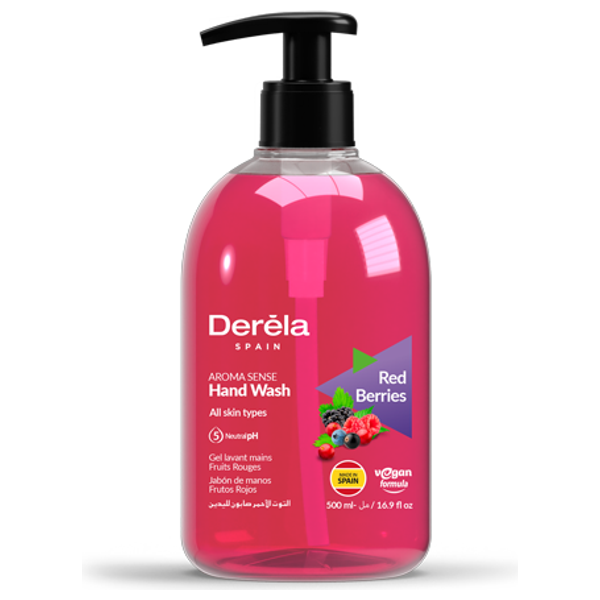 Derela Spain Hand Wash in Red Berries provides a vegan, neutral-pH formula for gentle cleansing suitable for all skin types. The 500 ml bottle delivers a refreshing berry fragrance for everyday use