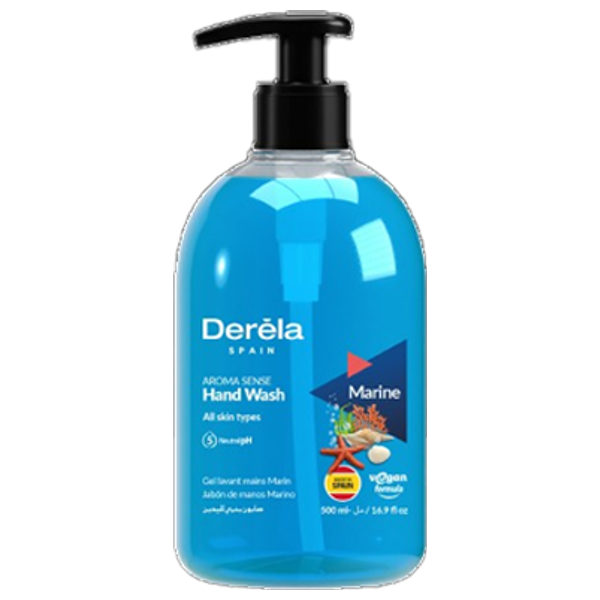 Derela Spain Marine Hand Wash provides a plant-based cleansing formula that leaves hands feeling fresh. Suitable for all skin types, it features a marine fragrance and effectively cleanses without drying the skin. Packaged in a convenient 500 ml pump bottle for everyday use.